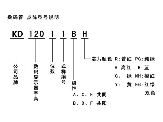 •    數(shù)碼管點(diǎn)陣型號(hào)說明